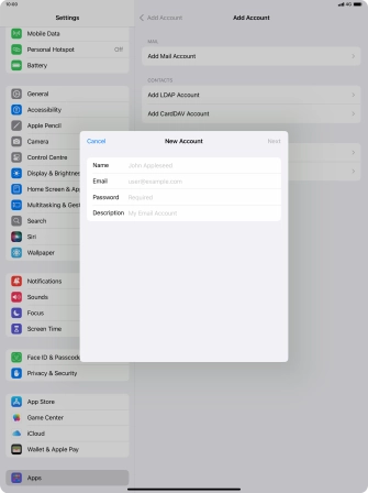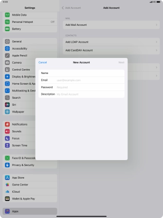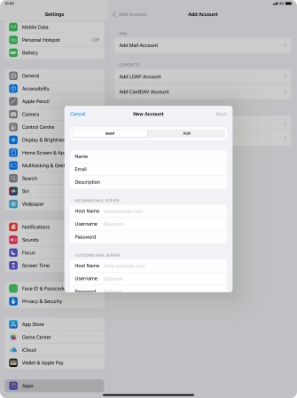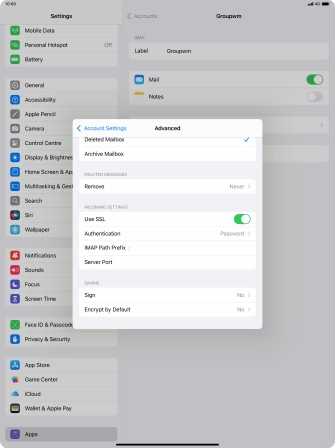 Press the required email account and follow the instructions on the screen to select settings for the specific account.