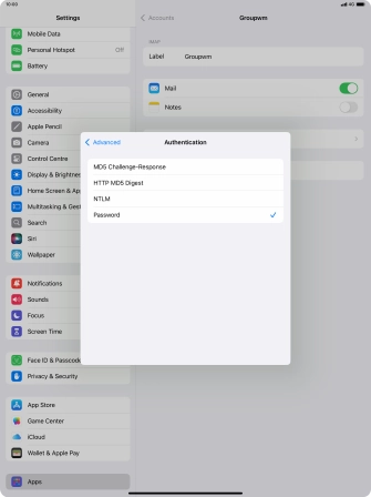 Press Password and key in the password for your email account.