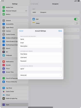 Press Username and key in the username for your email account.