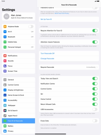 Turn use of lock code on your Apple iPad Pro 12.9 (2021) iPadOS 15.0 on or off