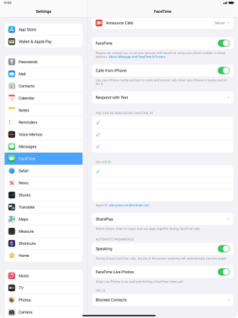 Press the required setting below "YOU CAN BE REACHED BY FACETIME AT".