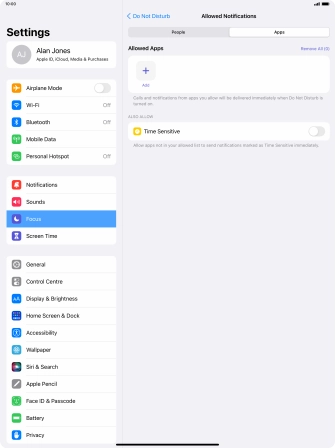 Press Apps and follow the instructions on the screen to select which apps you would like to receive notifications from when Do Not Disturb is turned on.