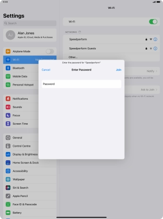 Press the required Wi-Fi network and key in the password for the Wi-Fi network.