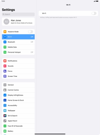 Press the indicator next to "Wi-Fi" to turn on the function.