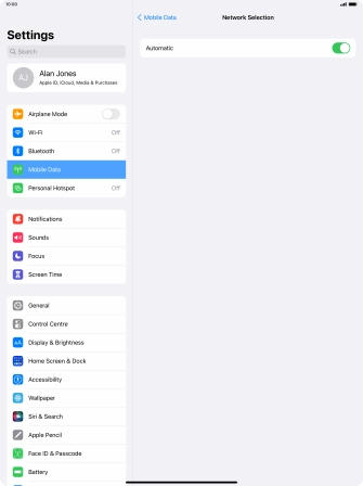 Press the indicator next to "Automatic" to turn automatic network selection on or off.