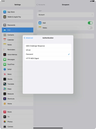 Press Password and key in the password for your email account.
