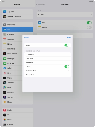 Press Password and key in the password for your email account. Please note that if you're using Vodafone's outgoing server, leave the password field empty.