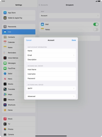 Press Username and key in the username for your email account.