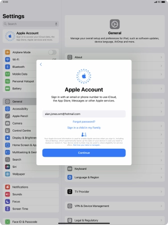 Activate Apple ID on your Apple iPad Pro 12.9 (2021) iPadOS 18