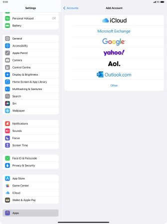 Press the required email account and follow the instructions on the screen to select settings for the specific account.