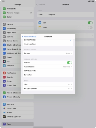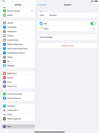 Press the required email account and follow the instructions on the screen to select settings for the specific account.