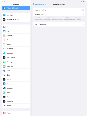 Turn GPS on your Apple iPad Pro 13-inch (M4) iPadOS 17 on or off