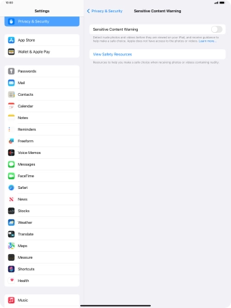 Turn Sensitive Content Warning on your Apple iPad Pro 13-inch (M4) iPadOS 17 on or off