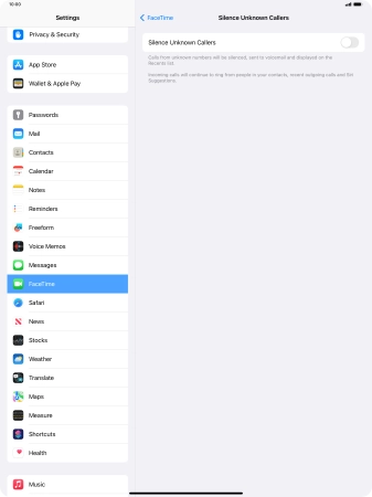 Press the indicator next to "FaceTime" to turn the function on or off.