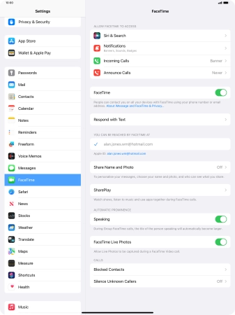 Press the required setting below "YOU CAN BE REACHED BY FACETIME AT".