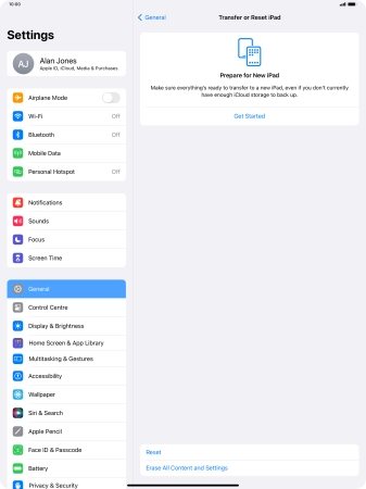 Press Transfer or Reset iPad.