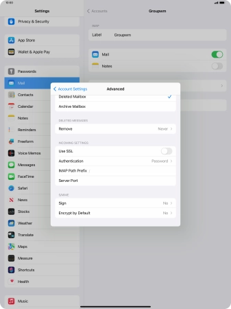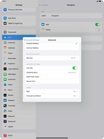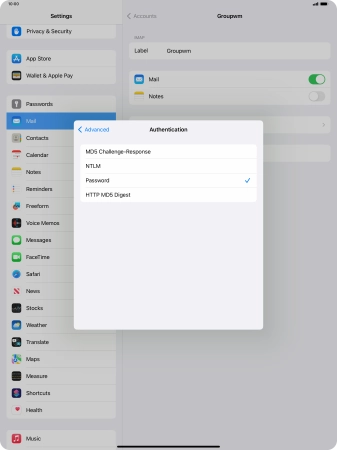 Press Password and key in the password for your email account.