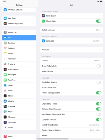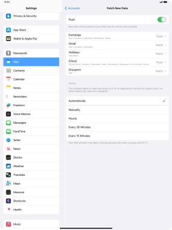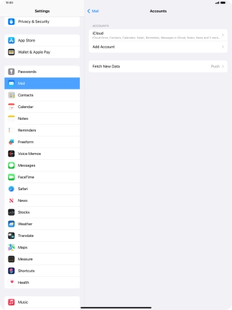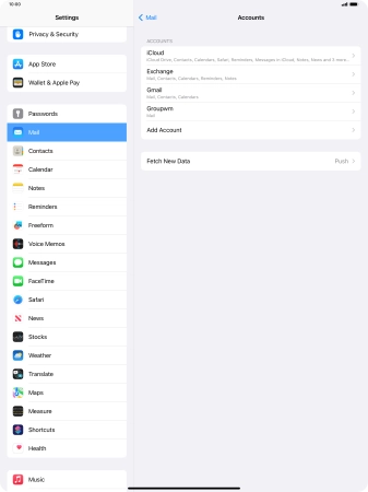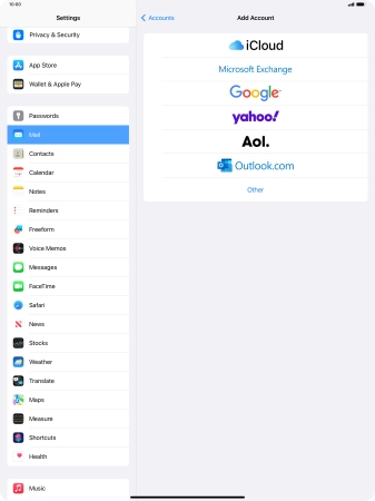 Press the required email account and follow the instructions on the screen to select settings for the specific account.