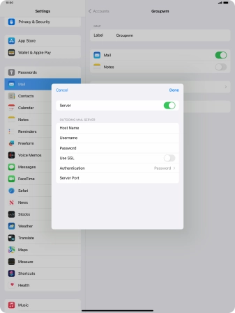 Press Password and key in the password for your email account. Please note that if you're using Vodafone's outgoing server, leave the password field empty.