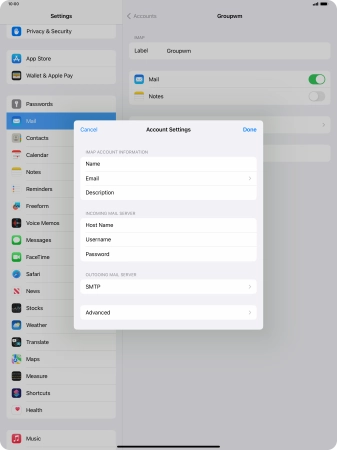 Press Username and key in the username for your email account.