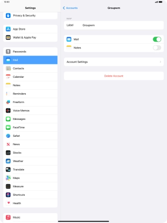 Press the name of the email account you've just set up.