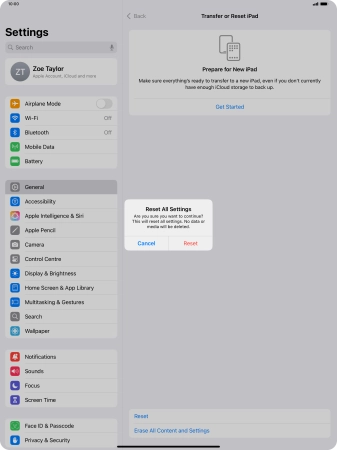 Key in the password for your Apple ID and press Turn Off. Wait a moment while the factory default settings are restored. Follow the instructions on the screen to set up your tablet and prepare it for use.