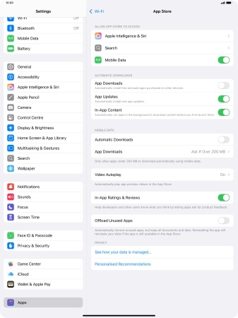 Turn automatic synchronisation of apps and app content on your Apple iPad Pro 13-inch (M4) iPadOS 18 on or off