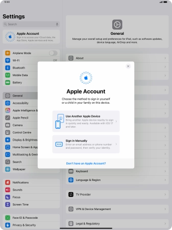 Activate Apple ID on your Apple iPad Pro 13-inch (M4) iPadOS 18