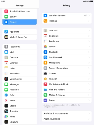 Turn tracking request for downloaded apps on your Apple iPad Pro 9.7 iPadOS 15.2 on or off