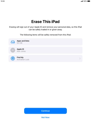 Key in the password for your Apple ID and press Turn Off. Wait a moment while the factory default settings are restored. Follow the instructions on the screen to set up your tablet and prepare it for use.