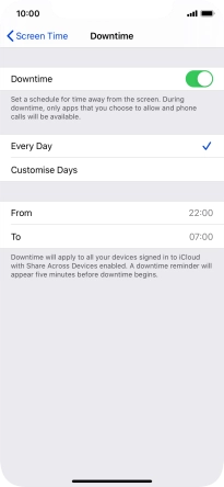 Press the indicator next to "Downtime" and follow the instructions on the screen to select Downtime period.