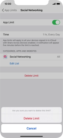 Press the remove icon next to the required app to remove it from the list of allowed apps during Downtime.