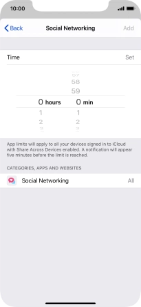 Press the add icon next to the required app to add it to the list of allowed apps during Downtime.