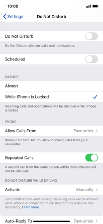 Press the required setting to select which contacts can call you even though Do Not Disturb is turned on.
