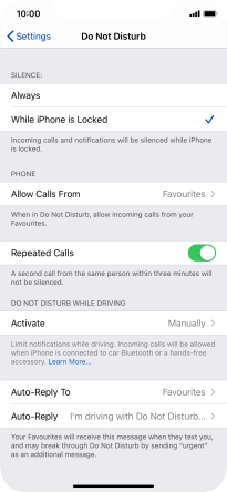 7. Select settings for Do Not Disturb While Driving