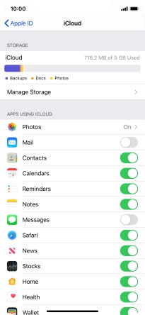 Press the indicator next to "iCloud Drive" to turn file synchronisation on or off.