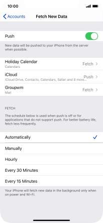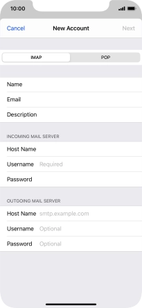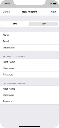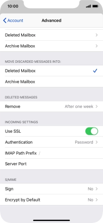 Press the required email account and follow the instructions on the screen to select settings for the specific account.