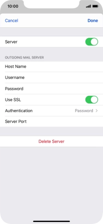 Press Password and key in the password for your email account. Please note that if you're using Vodafone's outgoing server, leave the password field empty.