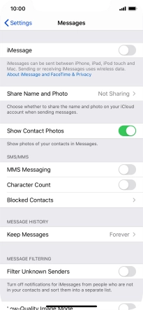 Press the indicator next to "MMS Messaging" to turn on the function.
