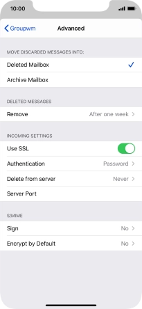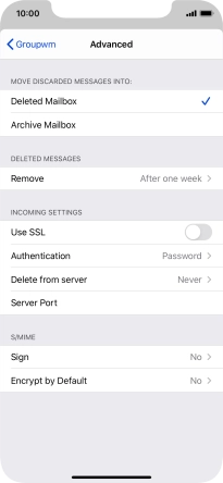 Press the required email account and follow the instructions on the screen to select settings for the specific account.