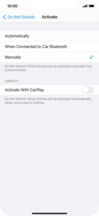 Press the required setting to select which contacts should automatically be notified that Do Not Disturb While Driving is turned on.