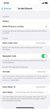 7. Select settings for Do Not Disturb While Driving