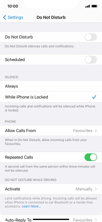 Press the required setting to select which contacts can call you even though Do Not Disturb is turned on.