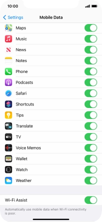 Press the indicator next to "Wi-Fi Assist" to turn the function on or off.