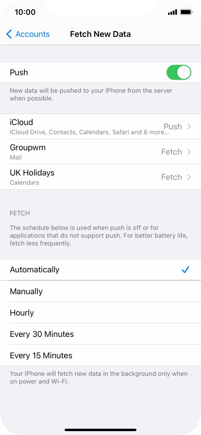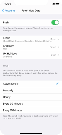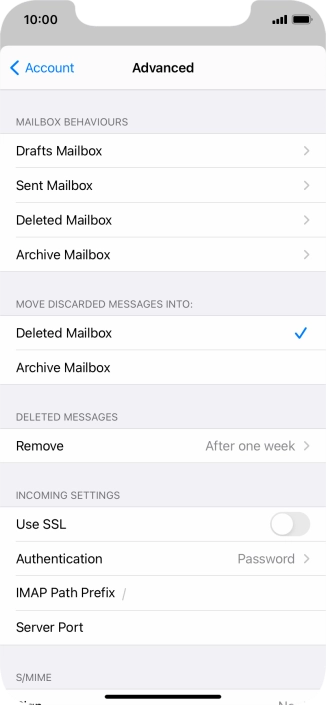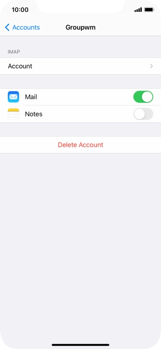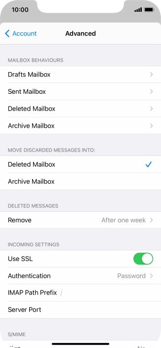 Press the required email account and follow the instructions on the screen to select settings for the specific account.