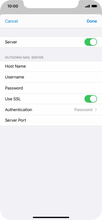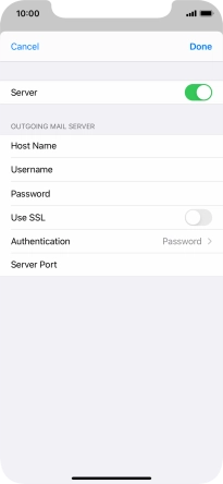 Press Password and key in the password for your email account. Please note that if you're using Vodafone's outgoing server, leave the password field empty.