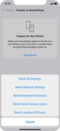 Press Reset All Settings. Wait a moment while the factory default settings are restored. Follow the instructions on the screen to set up your phone and prepare it for use.