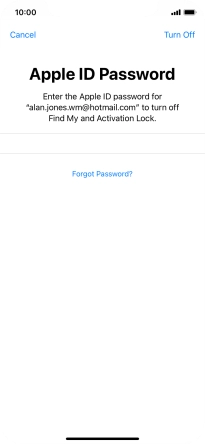 Key in the password for your Apple ID and press Erase iPhone. Wait a moment while the factory default settings are restored. Follow the instructions on the screen to set up your phone and prepare it for use.