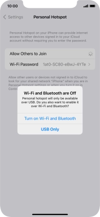 Key in the password for the personal hotspot and establish the connection.