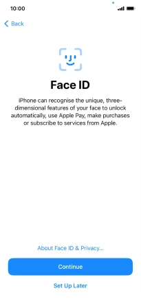 Follow the instructions on the screen to turn on use of Face ID or press Set Up Later.